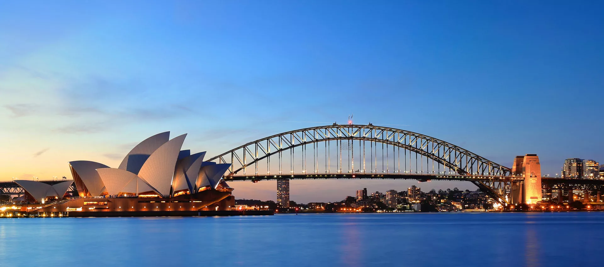 The sunsets on the harbor and opera house in Sydney.